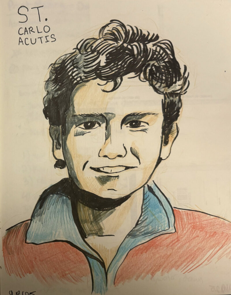 Here is a sketch of newly Canonized Saint Carlo Acutis that I drew on